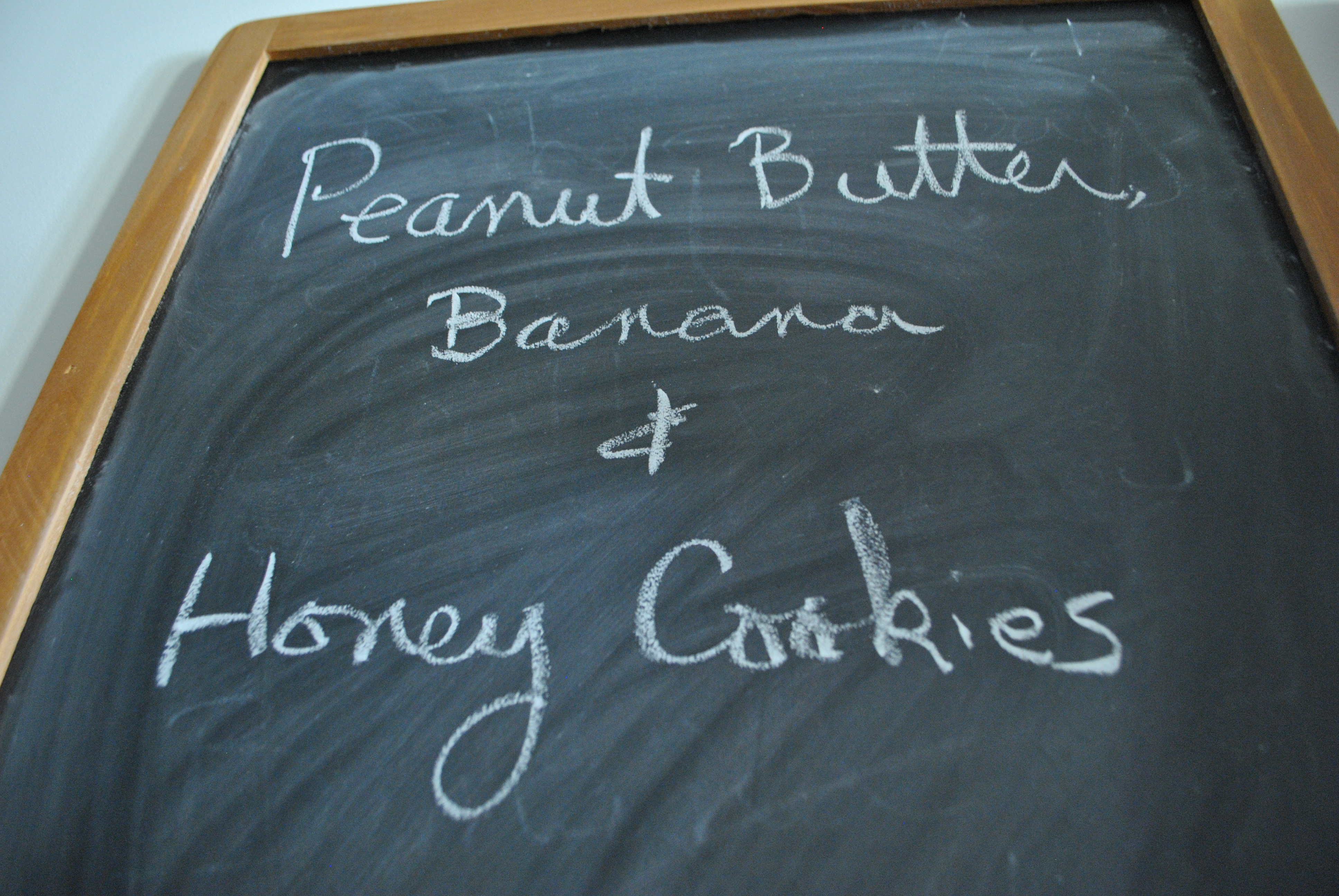 Now that I’m living alone, I find the rate of consumption of bananas has slowed tremendously. So, what does a baker do? I’ve been freezing the poor bananas that I don’t get around to eating and have gone into overripe mode. With a freezer shelf filling up with bananas, I had to do something. So I decided to see if I can make a cookie version of one of my favorite post run recovery sandwiches, the Peanut butter banana sandwich with honey.
