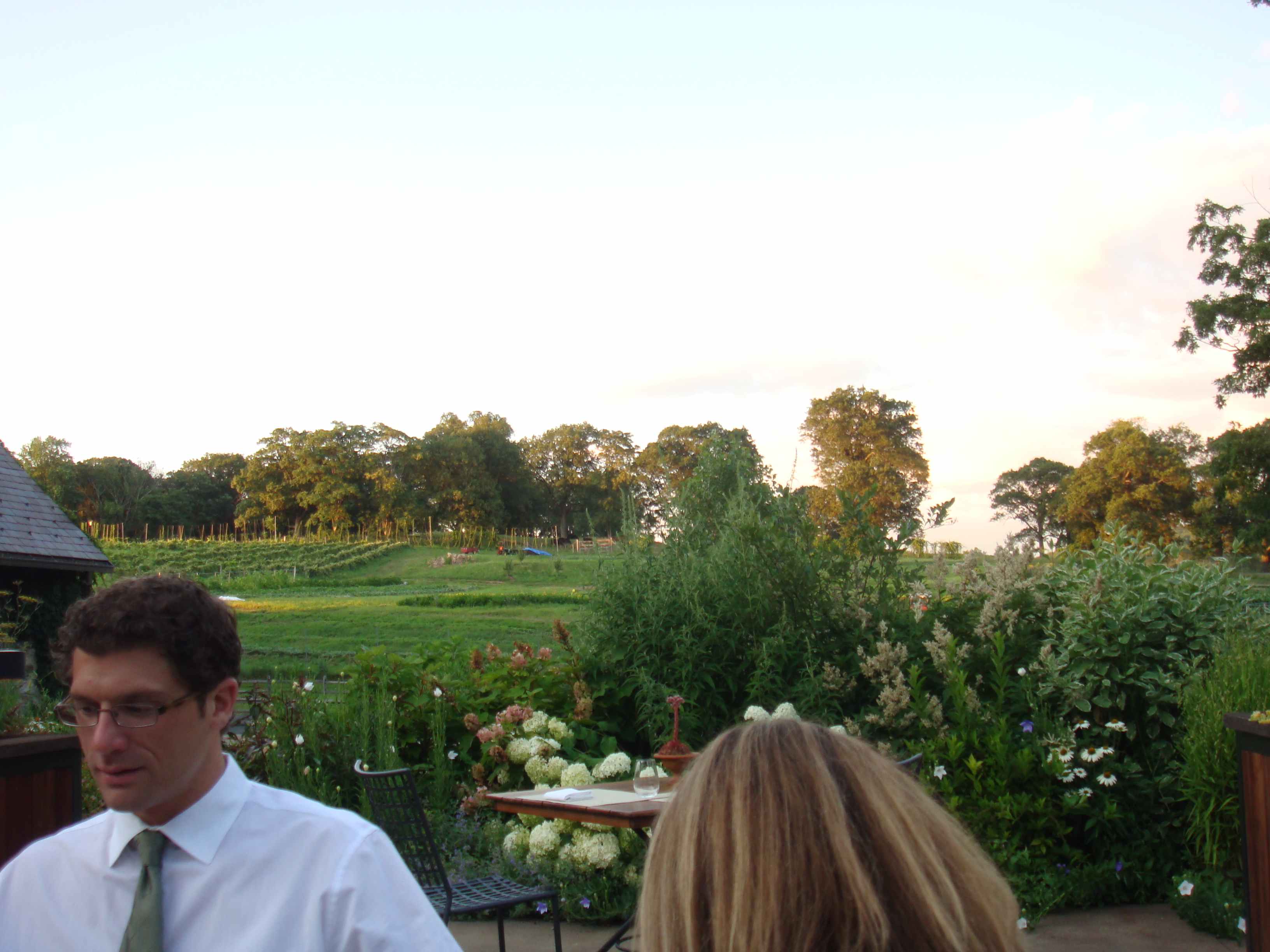 We moved outside to the terrace for dessert. The sun was setting and we were looking out into the vegetable fields where the fireflies were starting to come out and provide nature’s sparkling lights, or as it was also termed, “Farm Fireworks”.